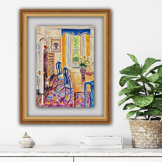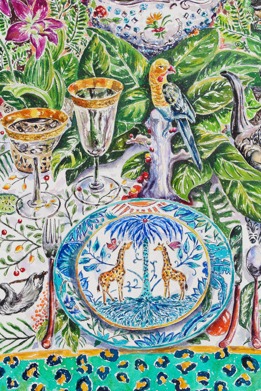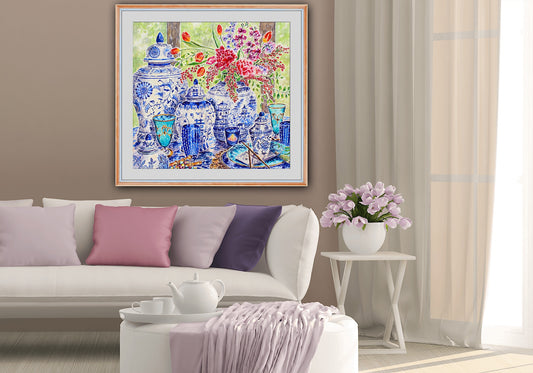 Chinoiserie Table Style, An Original Watercolor And Ink Painting