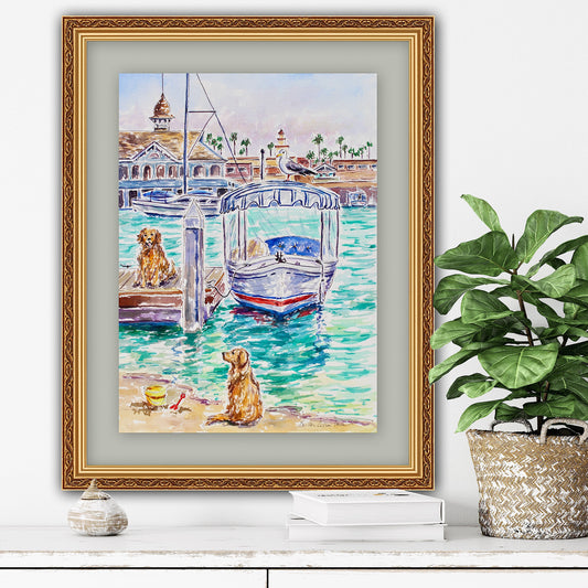 It's A Dog's Day On Balboa, An Original Watercolor And Ink Painting