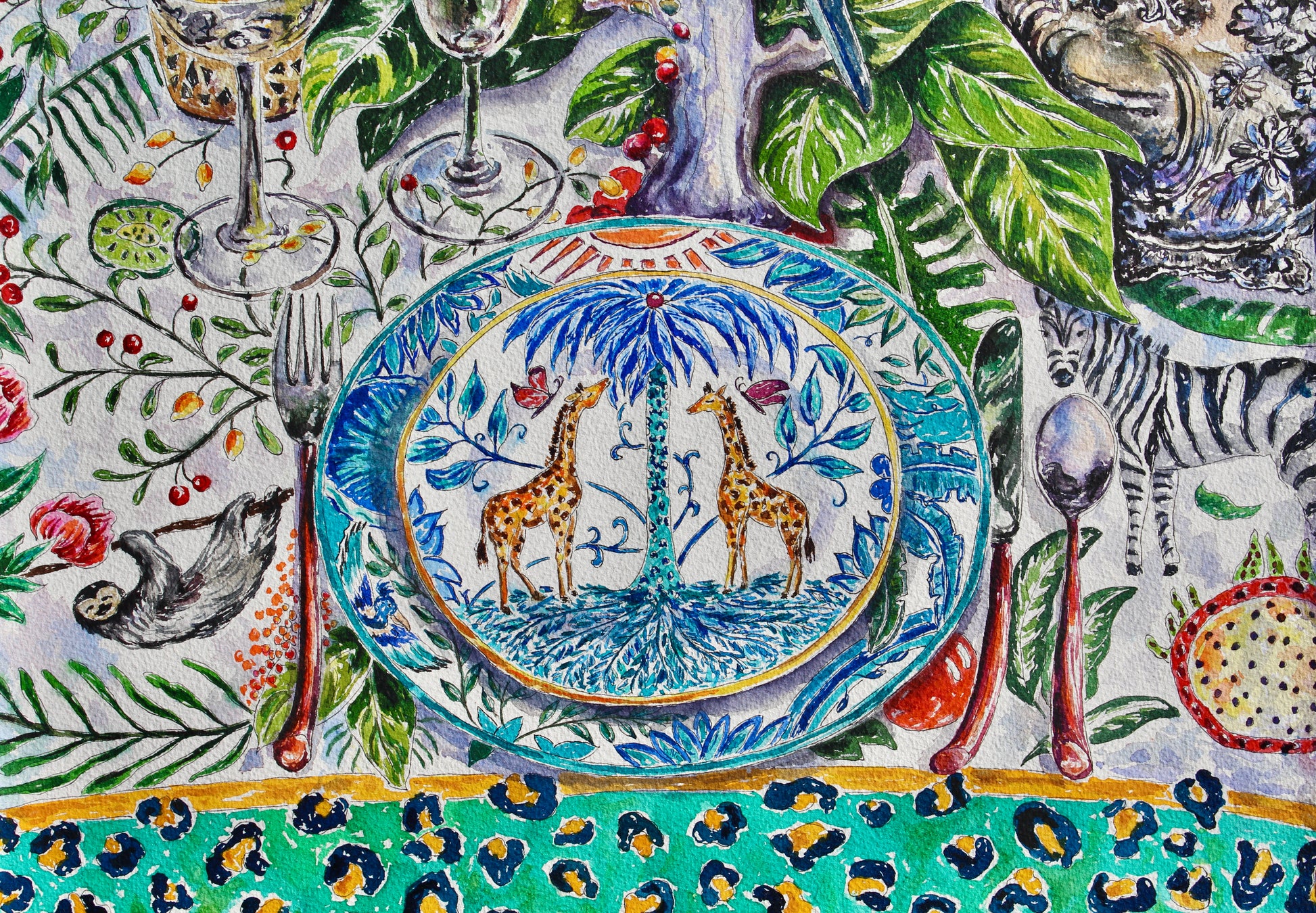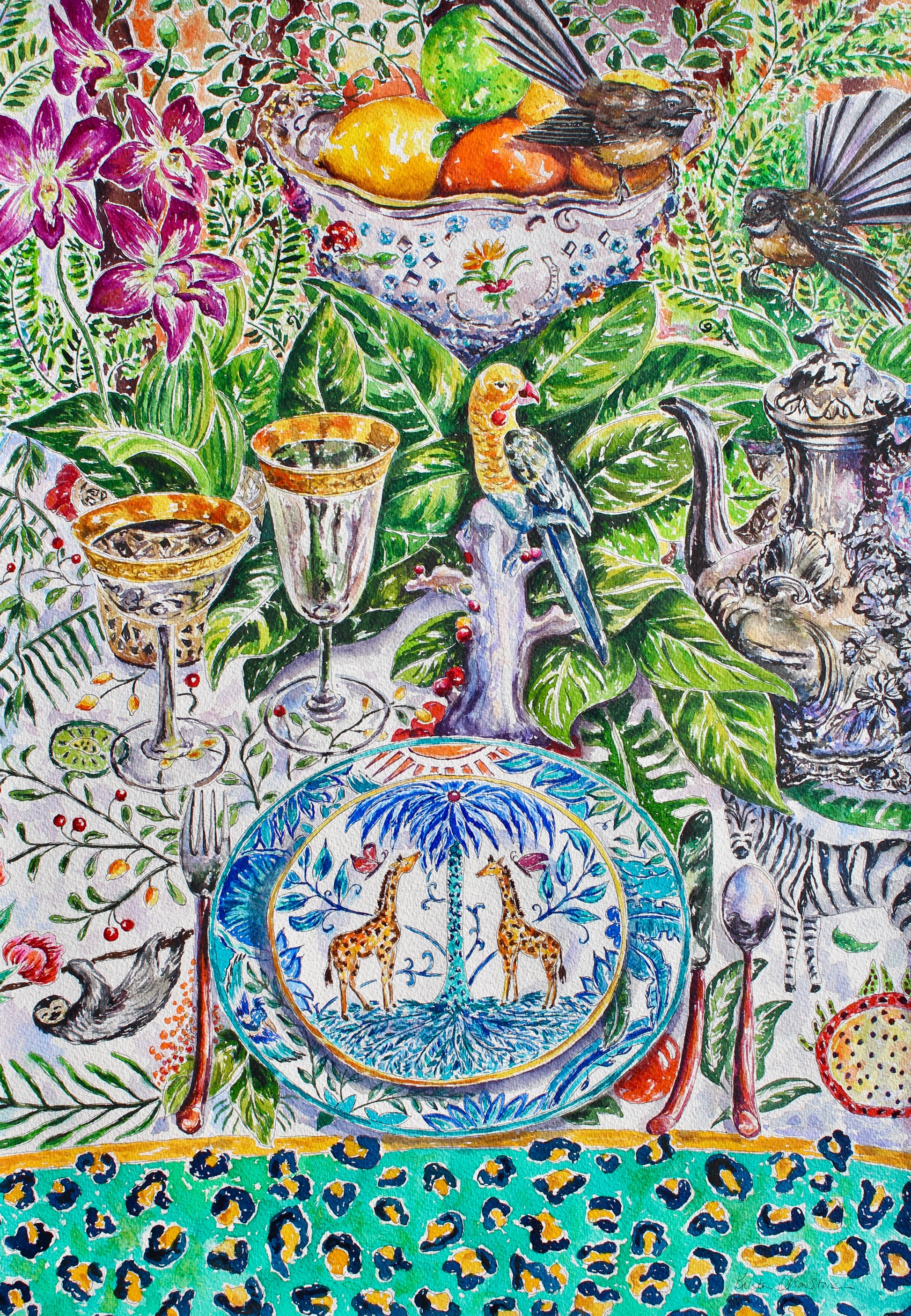 This is an open edition Giclee print of my painting, "The Grand Safari Table".